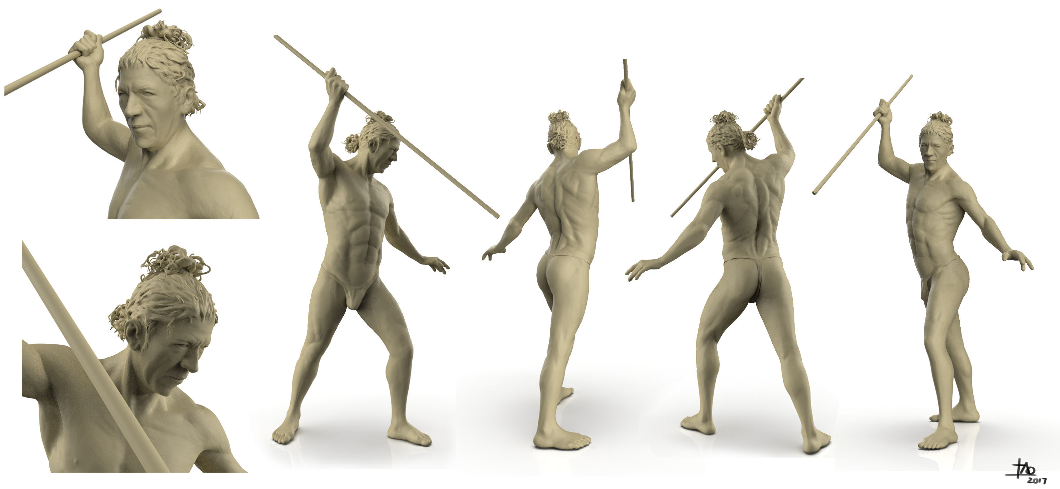 Anatomy study in ZBrush based on photo references.